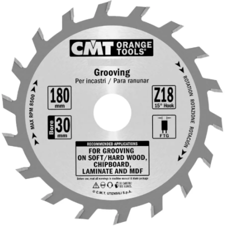 Lame circulaire CMT pour rainurer - Diamètre 180mm - Epaisseur 5mm - alesage 30m