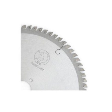 Lame circulaire carbure pour la coupe de l'aluminium et du PVC. Angle de coupe négatif pour plaquer la pièce sur la table de travail.