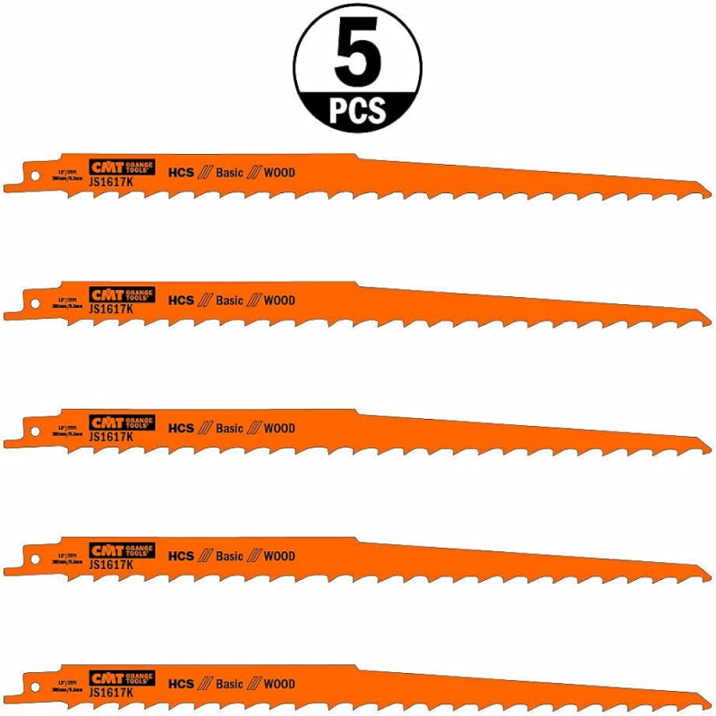 Lot de 5 lames de scie sabre pour la coupe de bois grossière, sans clous de moins de 250mm d'épaisseur, pour l'élagage de bois vert de moins de 25mm de diamètre.