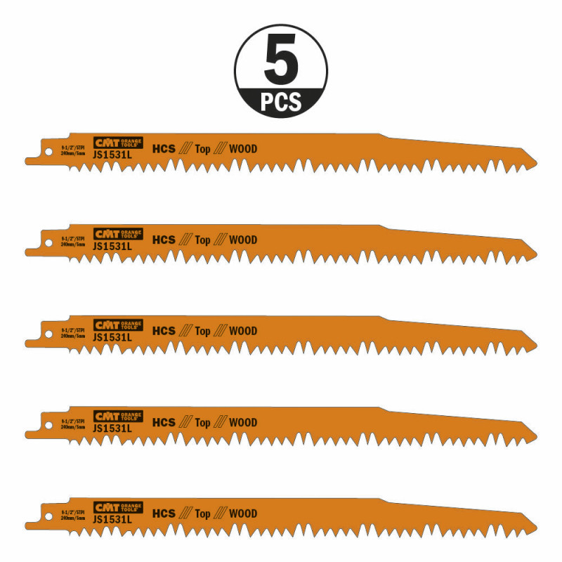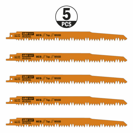 Lot de 5 lames de scie sabre pour la coupe du bois grossière, sans clous de moins de 190mm d'épaisseur, pour l'élagage de bois ert et pour la coupe de bois de chauffage de moins de 190mm de diamètre