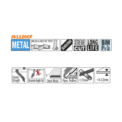 Lot de 5 lames de scie sabre pour la coupe de tôles épaisses de 4mm à 12mm d'épaisseur, tuyaux et profilés à parois épaisses de moins de 175mm. Idéal pour coupe-tubes, les travaux de démolition. Coupe puissante et grossière.