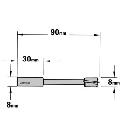 Cette mèche à façonner acier CMT a un diamètre de 8 mm et une longueur totale de 90 mm.