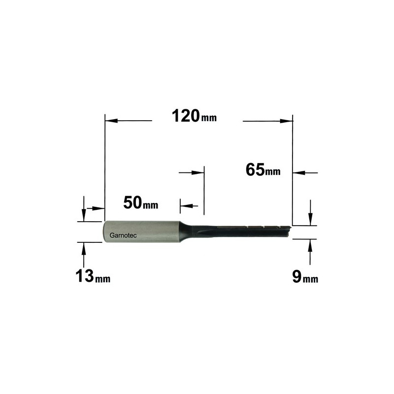 Cette mèche à mortaiser CMT a un diamètre de 9 mm, une queue de 13 mm ,une longueur utile de 65 mm et une longueur totale de 120 mm.