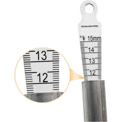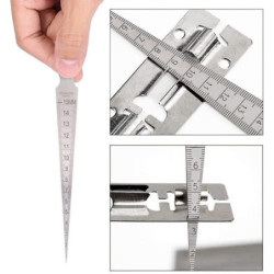 Reuni en un seul outil compact une jauge de diamètre et une règle.