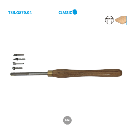 Outils de tournage avec 4 têtes carbure interchangeables : droite, bombée, gorge, grain d'orge.