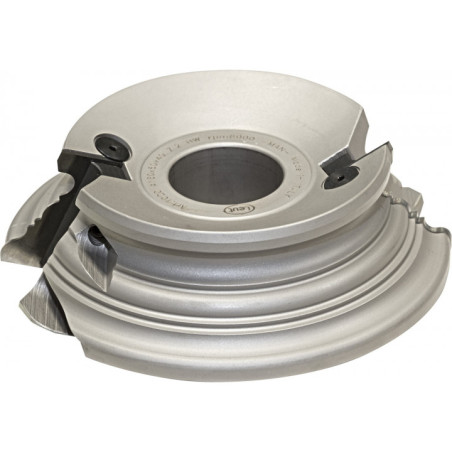 Cet outil à plaquettes carbure permet de réaliser des quarts de rond d'un rayon de 15mm en travaillant par dessus. Il a un diamètre de 140 mm, un alésage de 50 mm et 2 coupes carbure.