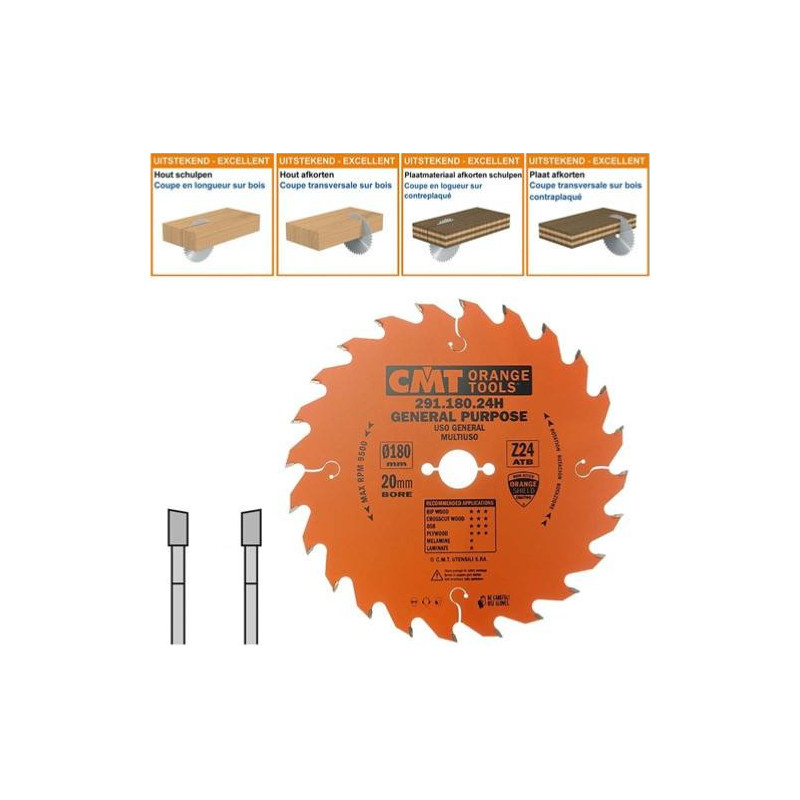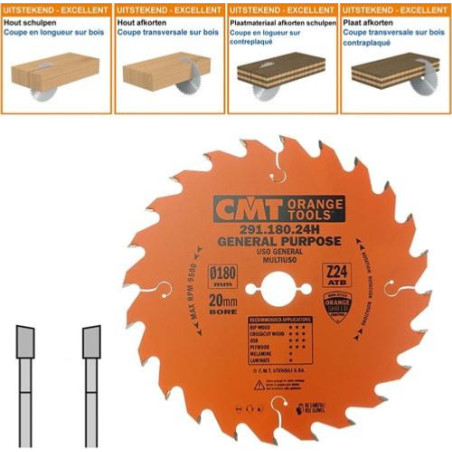 Lame circulaire CMT pour coupes transversales pour portatives - Diamètre 180mm - Alésage 20mm - 24 dents alternées - Ep 2,6/1,6 - CMT Orange tools