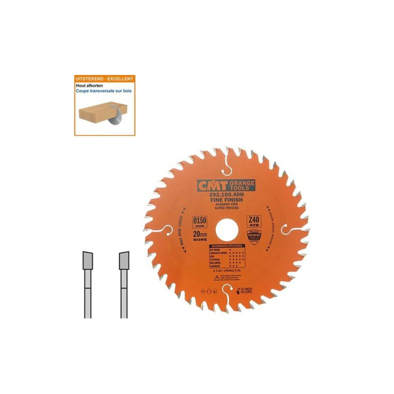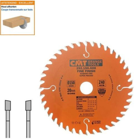 Lame circulaire CMT pour coupes transversales pour portatives - Diamètre 150mm - Alésage 20mm - 40 dents alternées - Ep 2,4/1,4 - CMT Orange tools