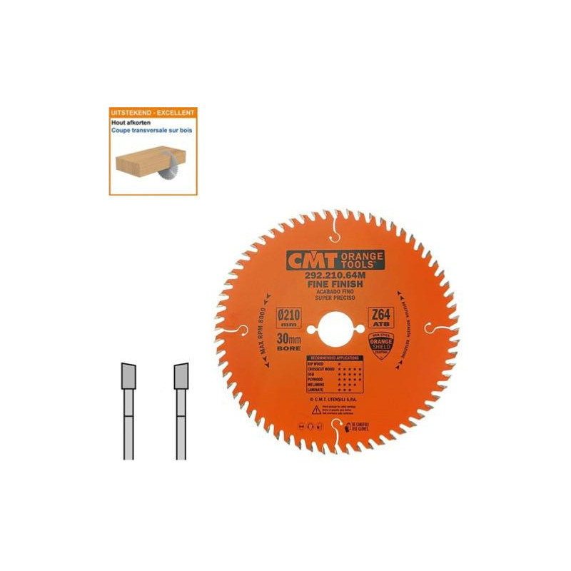 Lame circulaire CMT pour coupes transversales pour portatives - Diamètre 210mm - Alésage 30mm - 48 dents alternées - Ep 2,8/1,8 - CMT Orange tools Prijs € 39,60 Inclusief belasting