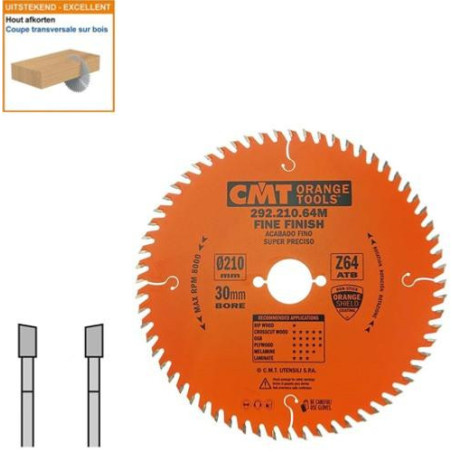 Lame circulaire CMT pour coupes transversales pour portatives - Diamètre 210mm - Alésage 30mm - 36 dents alternées - Ep 2,8/1,8 - CMT Orange tools Prijs € 34,00 Inclusief belasting
